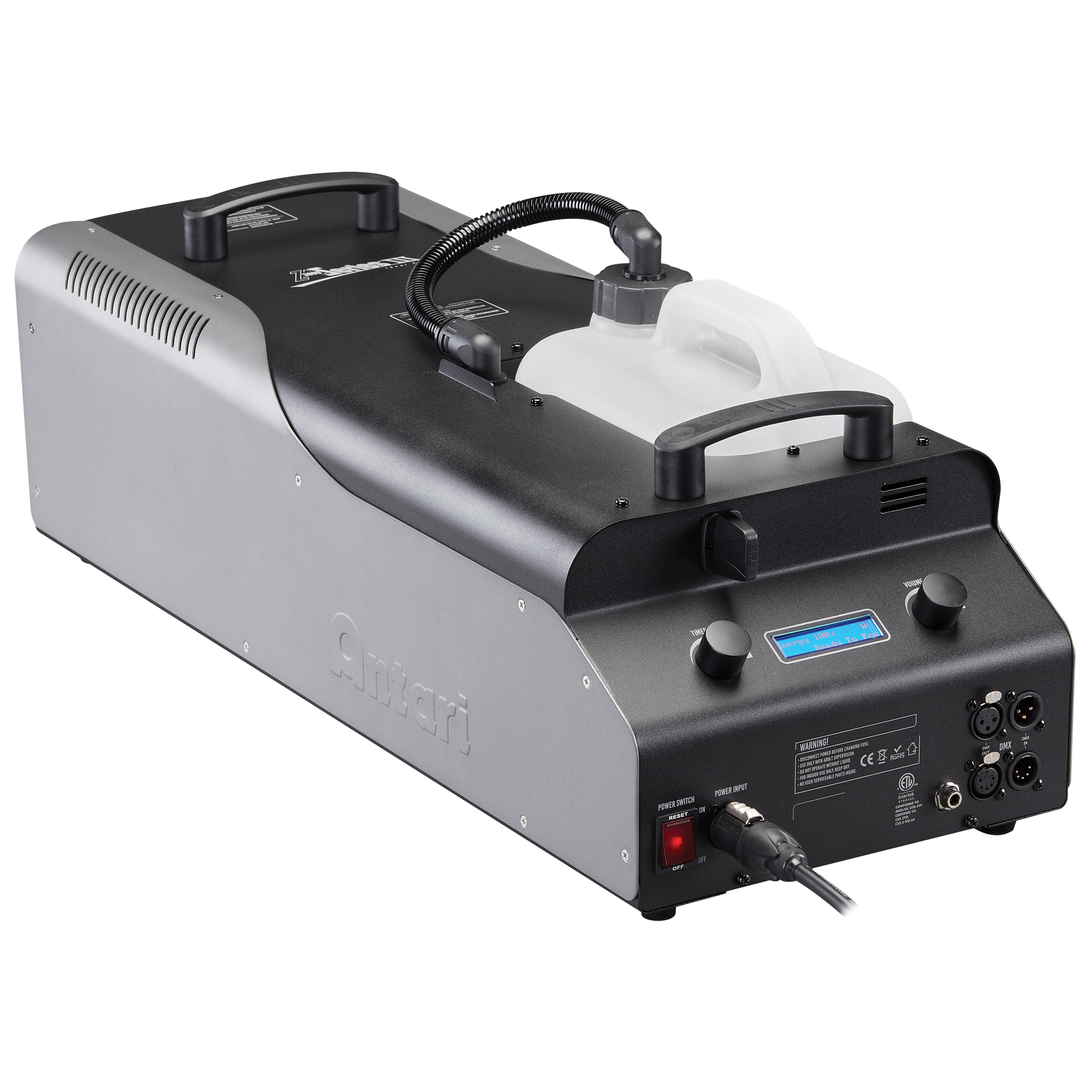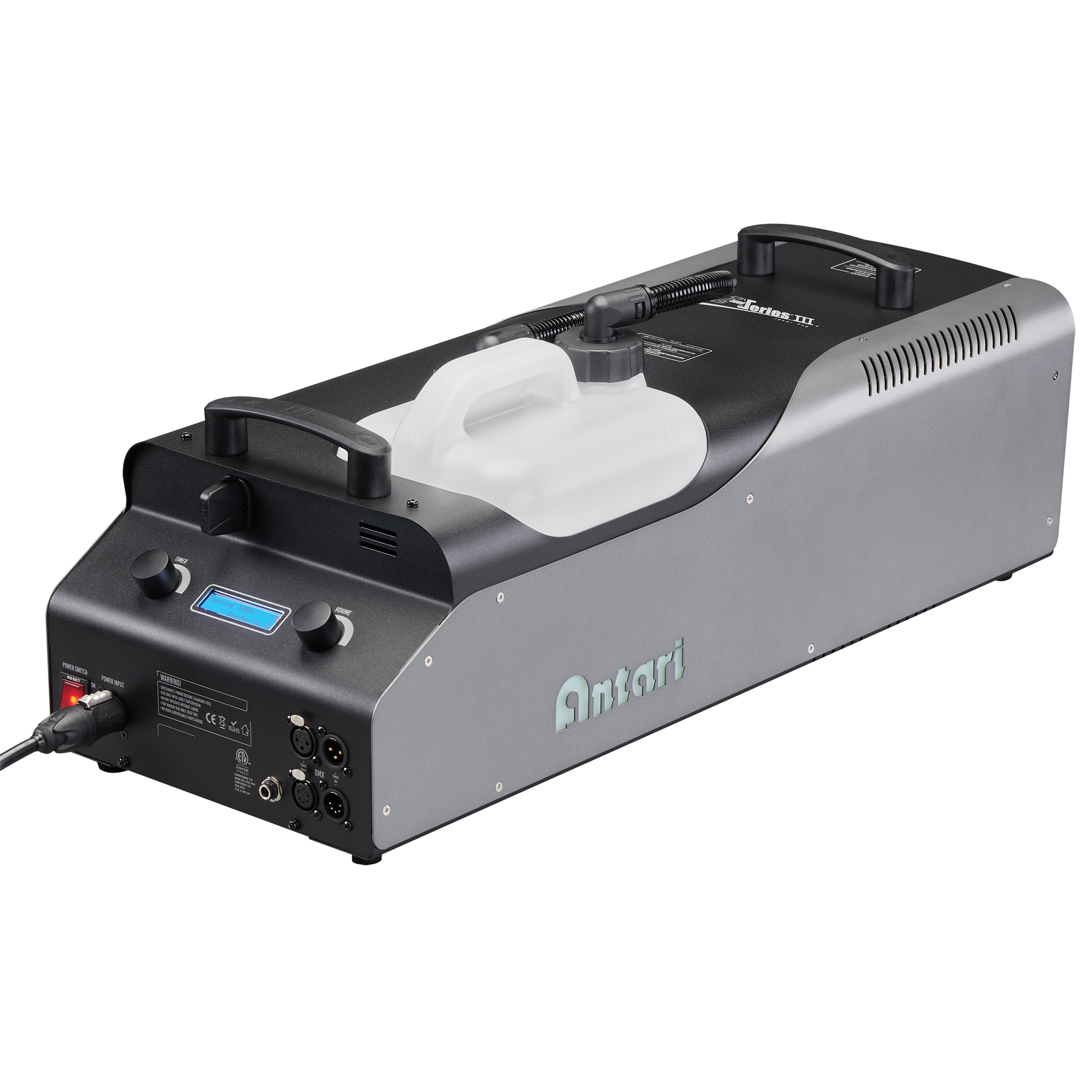 De vernieuwde Antari Z-3000 III fogger heeft een volledig nieuwe gebruikersinterface met twee rotary encoders en geïntegreerde drukknoppen. De efficiëntie is ook verbeterd: de opwarmtijd is 2 minuten korter dan bij het vorige model. Deze krachtige rookmachine kan in slechts één minuut 250 ml rookvloeistof omzetten in een dichte nevel bij 100% output. De ingebouwde vloeistofdetector voorkomt dat de fogger zonder vloeistof komt te zitten en voorkomt onaangename gevolgen. De tank kan tot 6 liter rookvloeistof bevatten. De Z-3000 III fogger kan manueel bediend worden, via een interne timer, via de optionele afstandsbediening en via DMX, en is geschikt voor RDM. Met de optionele Antari WTR-20 draadloze afstandsbediening kun je de output verhogen of verlagen en de output in- of uitschakelen.