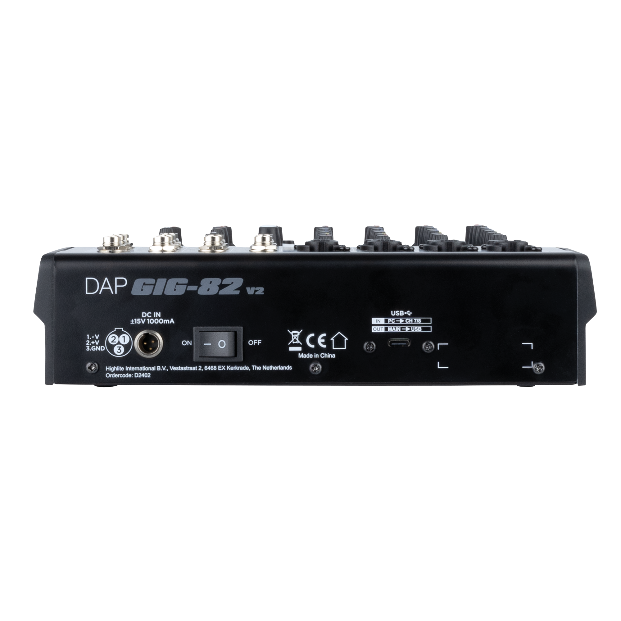 De GIG-82 V2 beschikt ook over een USB-C-interface met 2-in/2-out-functionaliteit, gedeeld met de kanaalingang 7/8, waardoor hij ideaal is voor opname en weergave. Uitgangen zijn onder meer een paar gebalanceerde 6,3 mm jack-hoofduitgangen, een aparte control room-uitgang via gebalanceerde jacks, een hoofdtelefoonuitgang met onafhankelijke volumeknop (die ook het uitgangsniveau van de control room instelt) en een minijack-opname-uitgang die gelijk is aan het USB-signaal.