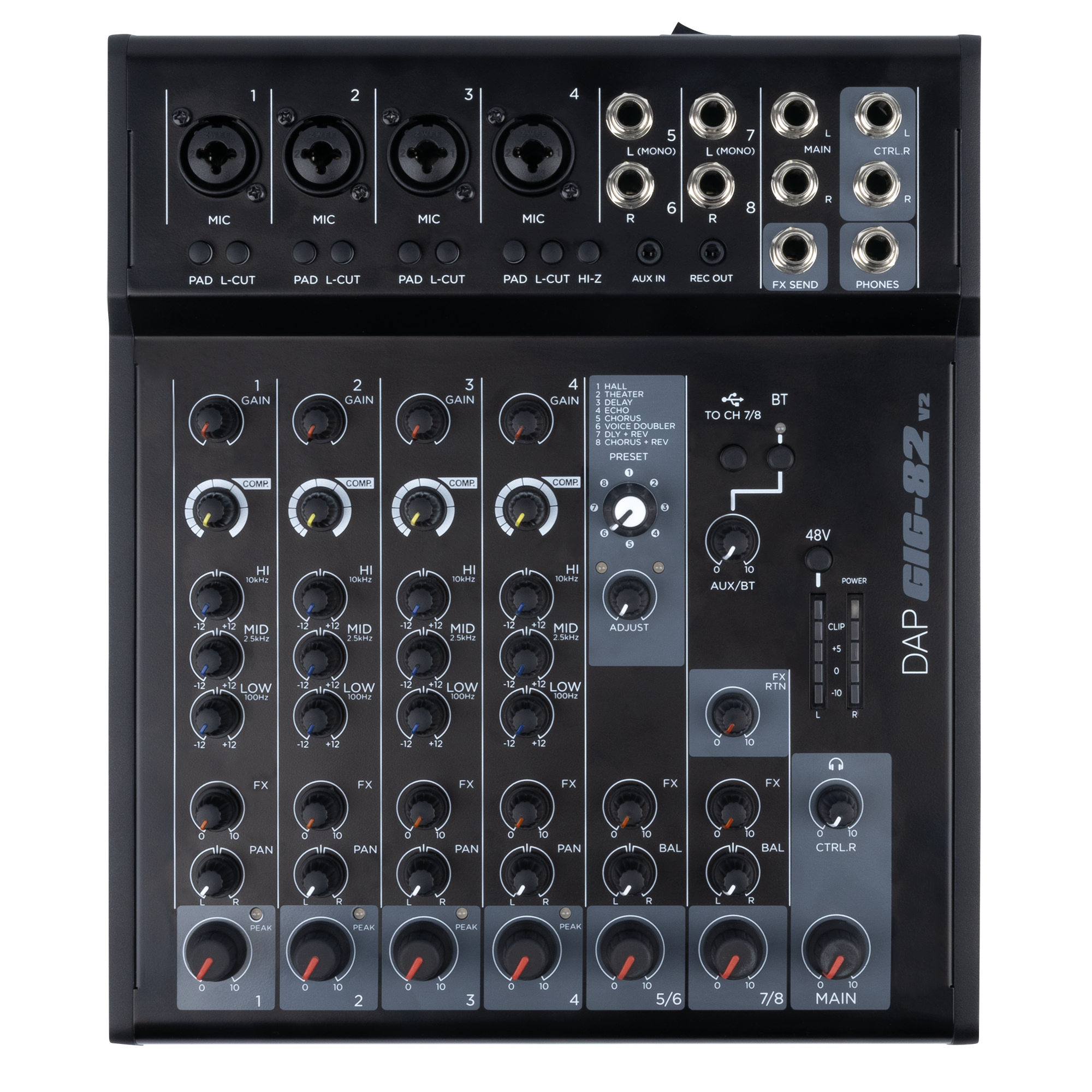 DAP GIG-82 V2 – 8-kanaals analoog mengpaneel met FX