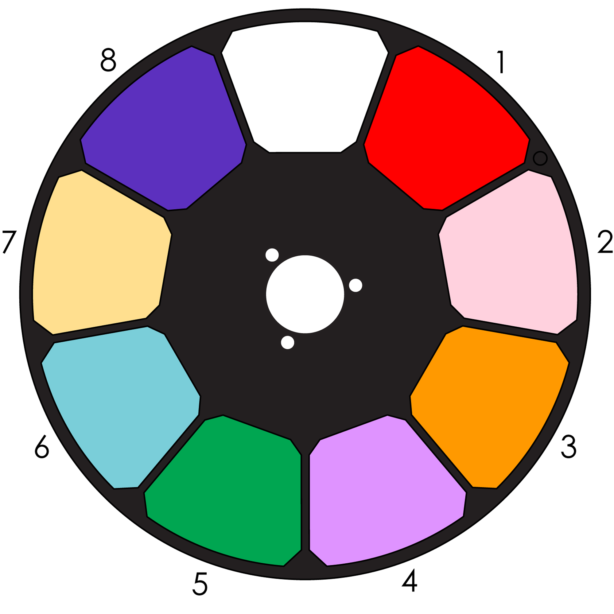 • CMY-kleurmenging en kleurenwiel met 8 kleuren + open