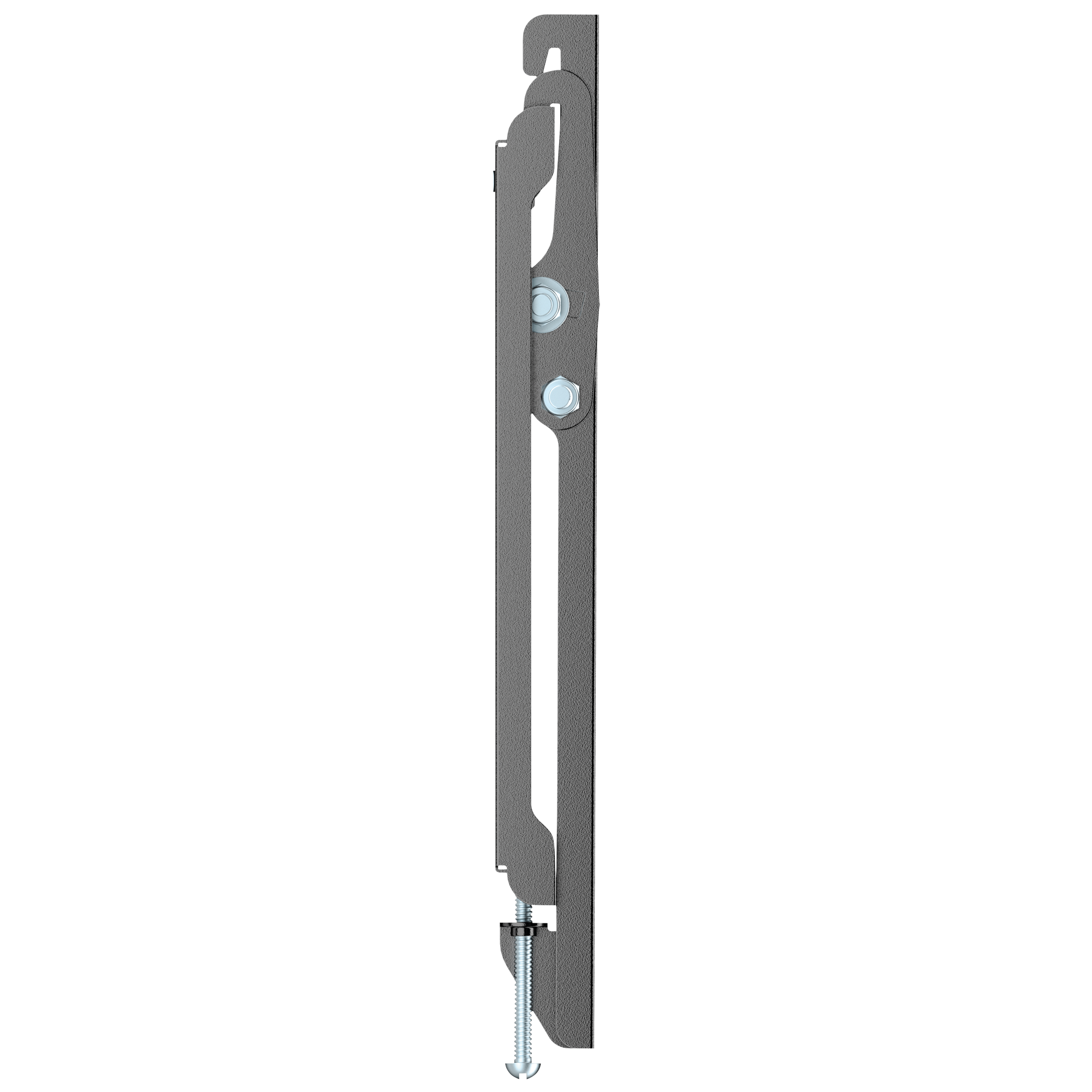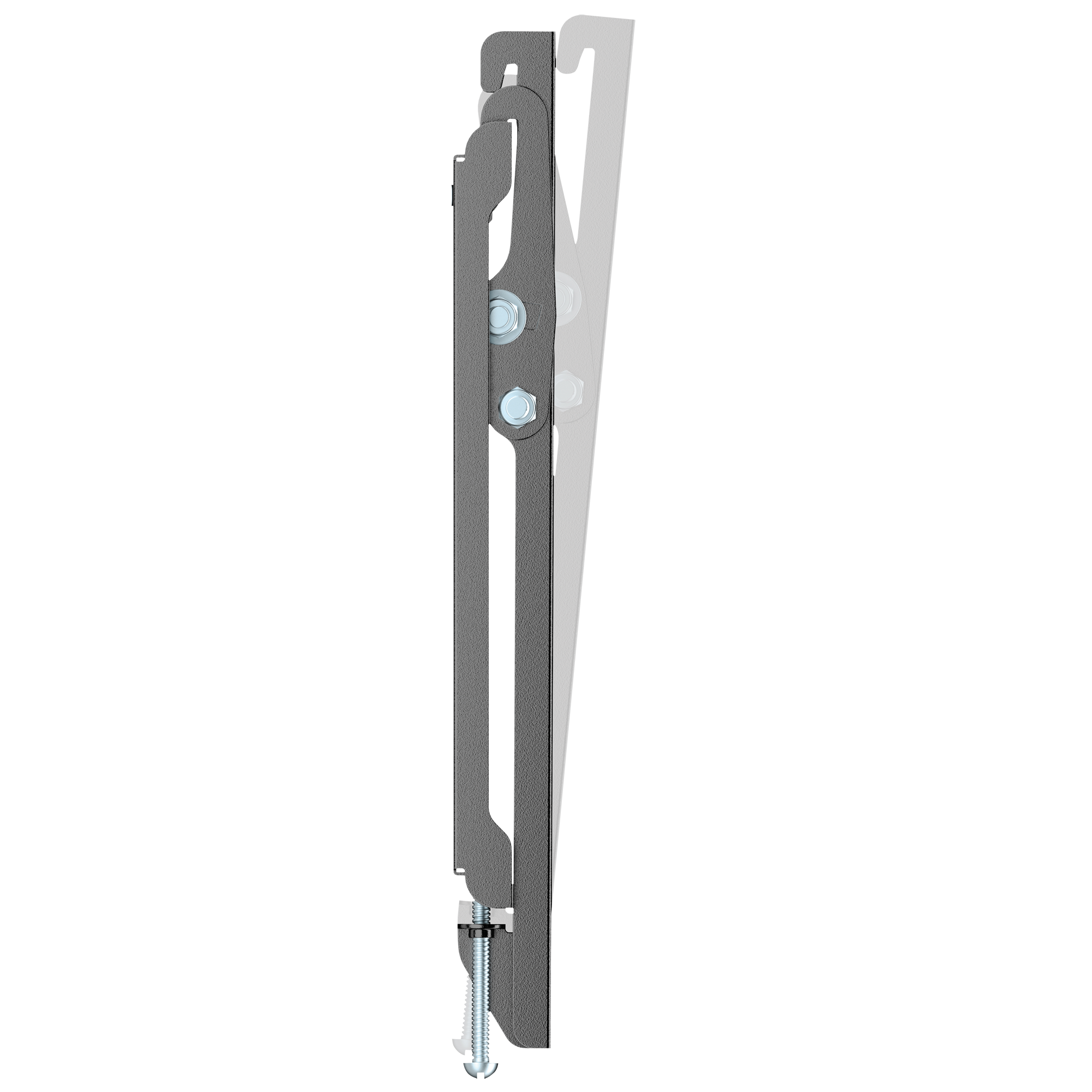 Met een kantelbereik van 0° tot -8° helpt hij om hinderlijke reflecties te verminderen en het kijkcomfort te verbeteren. Het ultraslanke profiel van slechts 22 mm houdt je tv dicht bij de muur voor een strakke, moderne look. Dankzij de open constructie zijn de kabels gemakkelijk bereikbaar en de geïntegreerde waterpas zorgt voor een nauwkeurige uitlijning tijdens de installatie. Veiligheidsschroeven houden de tv stevig op zijn plaats.