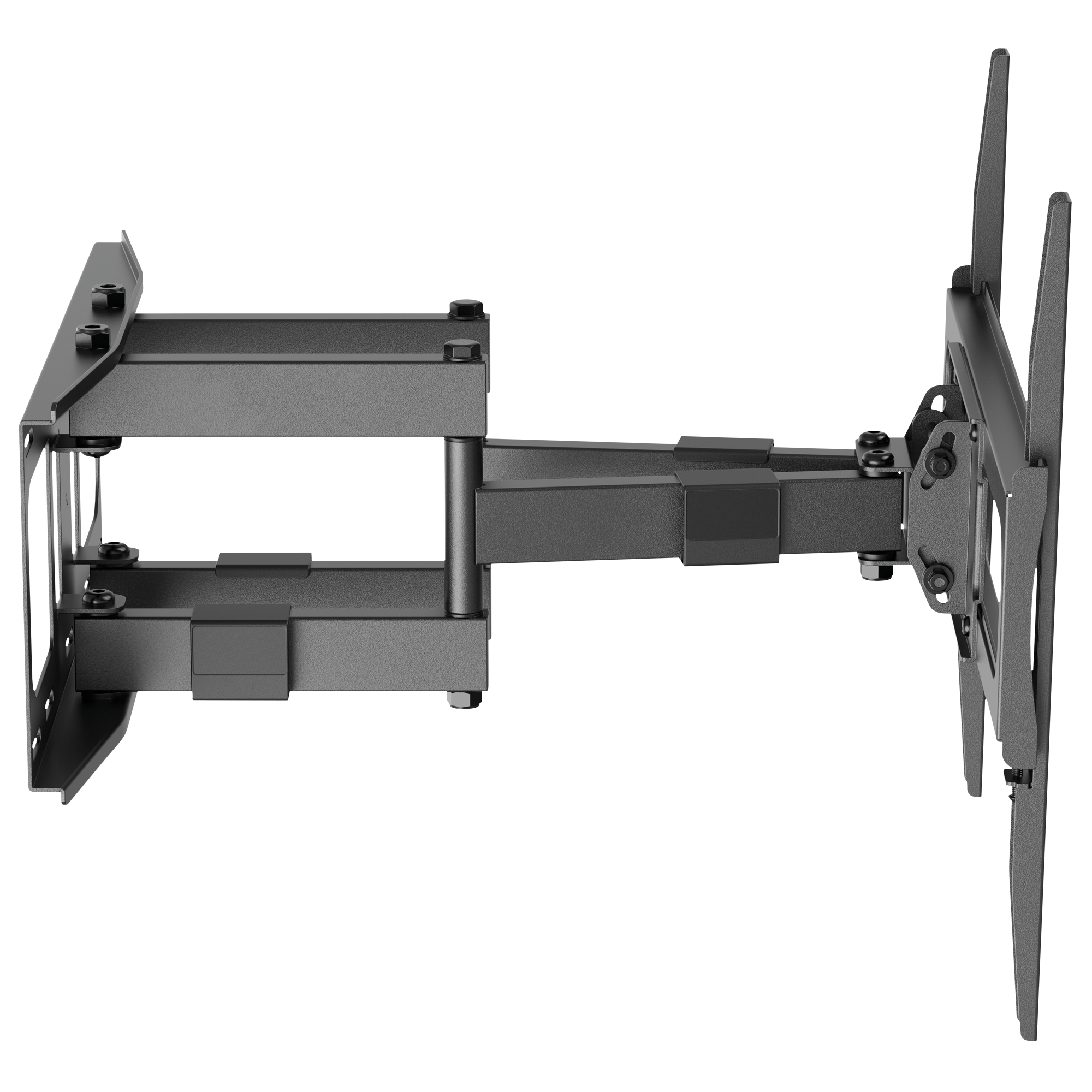 Hij kan kantelen (+5° tot -15°), draaien (±60°) en het scherm kan worden genivelleerd (+2° tot -2°) voor optimaal kijkcomfort. Het verstelbare profiel van 100 – 500 mm maakt flexibele positionering mogelijk en de afneembare muurplaat vereenvoudigt de installatie. De open constructie verbetert de ventilatie en kabeltoegang en het geïntegreerde kabelbeheer houdt je opstelling netjes en georganiseerd.
