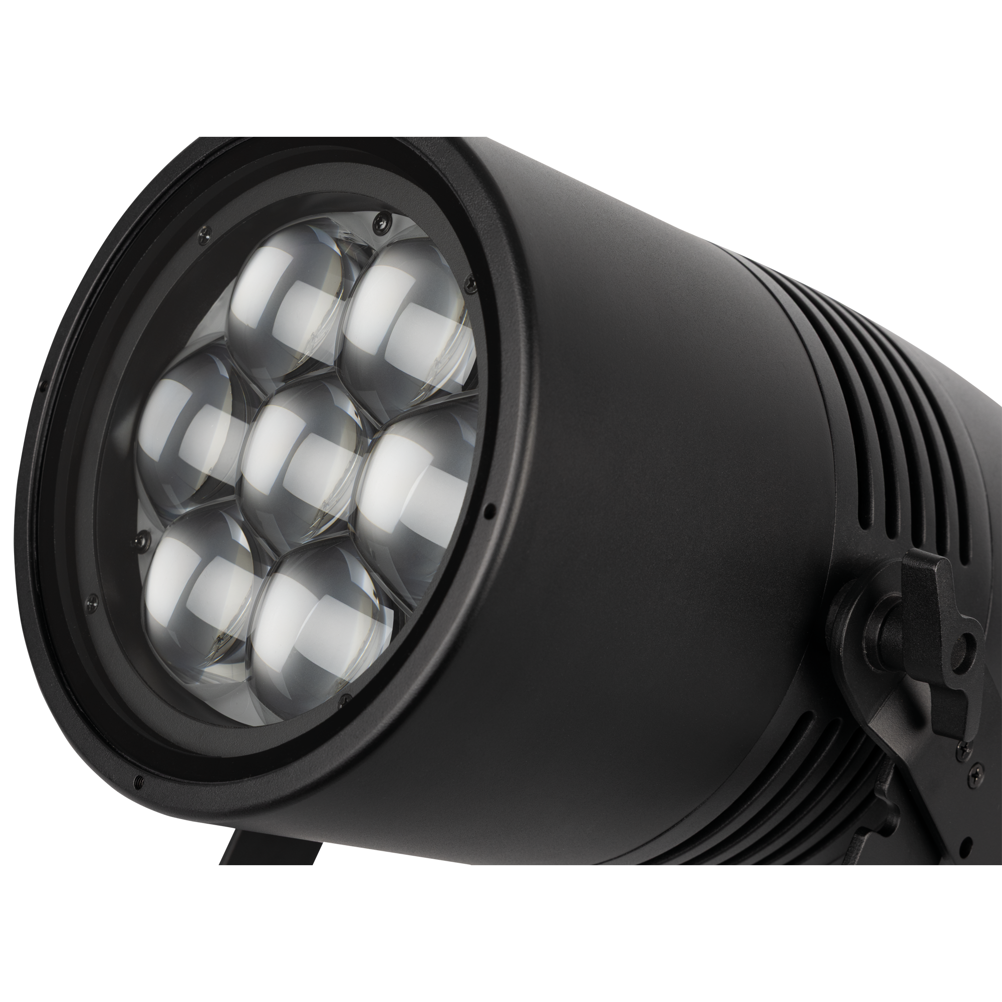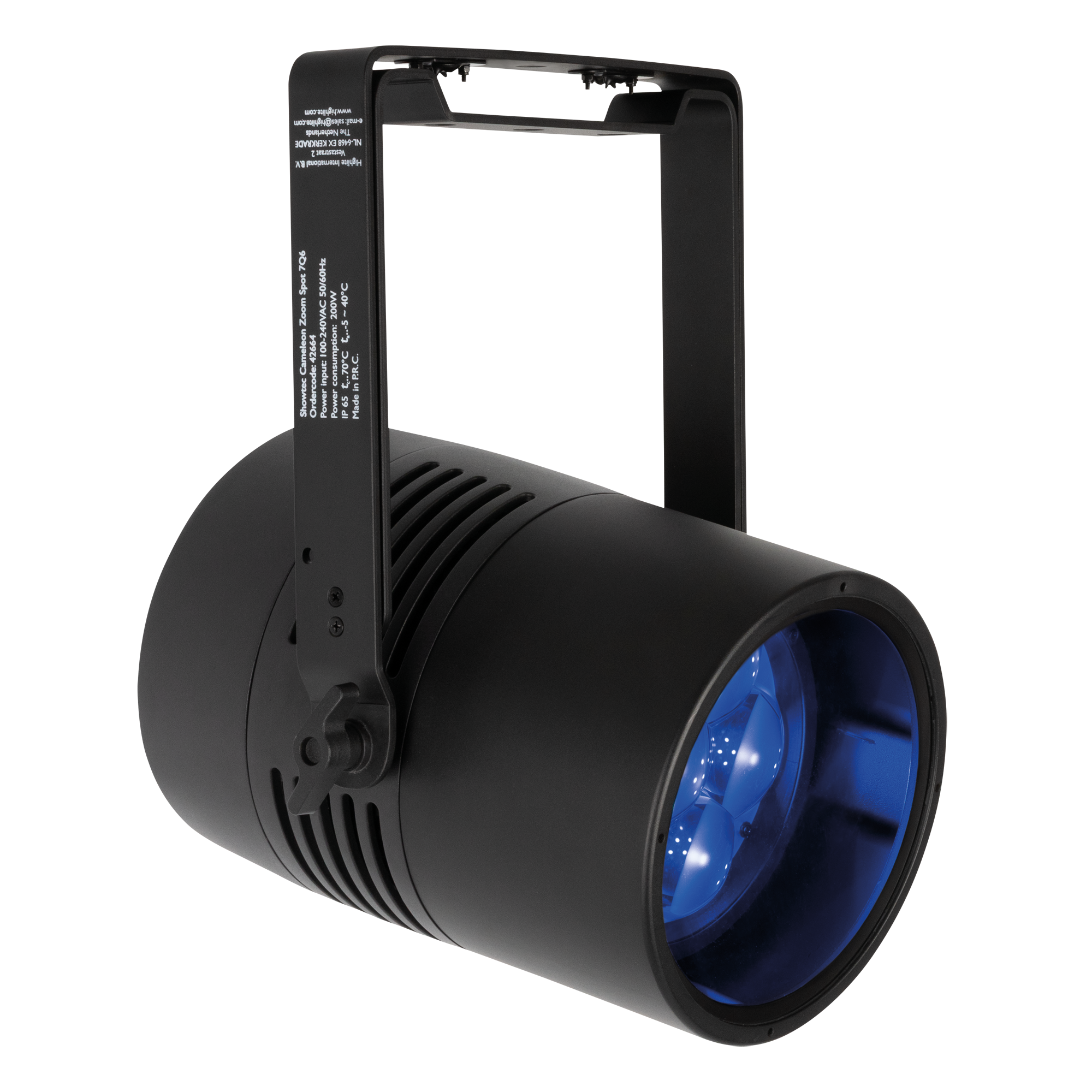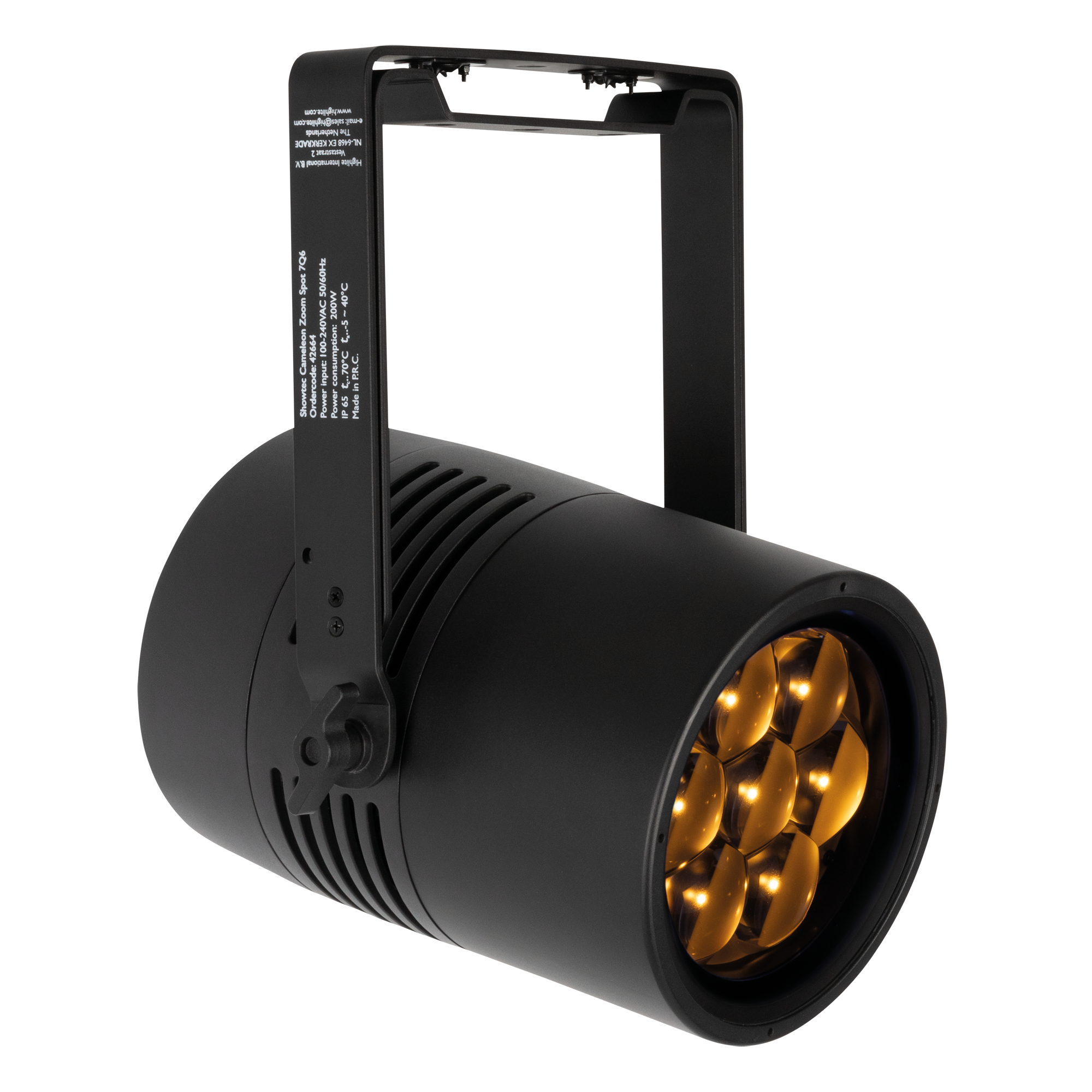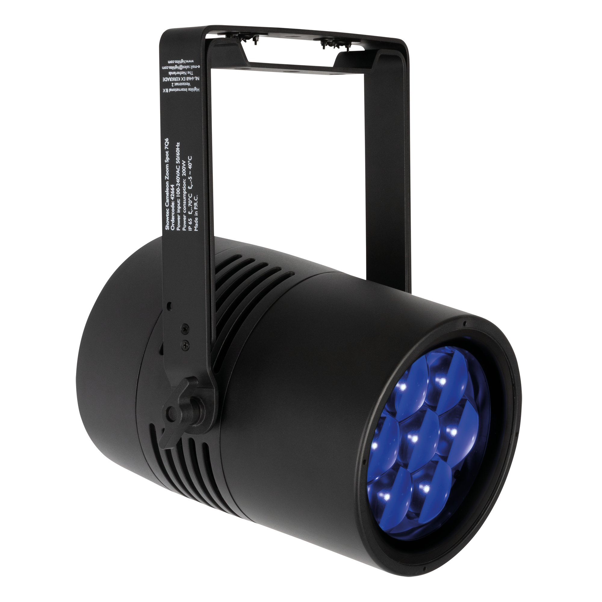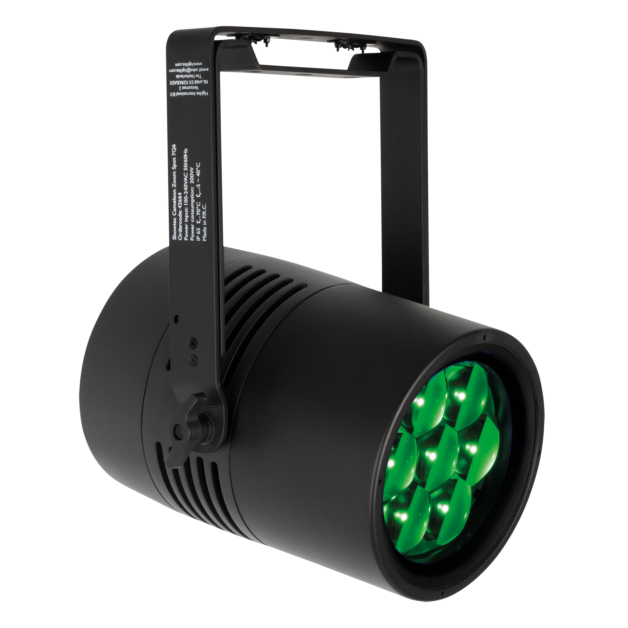 De Cameleon Zoom Spot 7Q6 Tour is een LED-spot met zeven 50 watt RGBWA-UV LED’s. Hij heeft een gemotoriseerd zoombereik van 6° tot 45° en beschikt over een dimmerregeling van 0-100% en stroboscoopeffecten van 0-20 Hz. Met kleuren-presets, ingebouwde kleurenmacro’s en 4 selecteerbare dimcurves is hij gemakkelijk te gebruiken. Dankzij instelbare PWM-frequenties is ook flikkervrij filmen mogelijk. Hij kan worden aangestuurd via DMX (incl. RDM) of worden bediend in Auto- of Master/Slave-modus. Handmatige bediening is ook mogelijk via het OLED-display en de touch-knoppen. De behuizing, de 3-pins XLR-connector en de Seetronic Power Pro True-connectoren hebben allemaal IP65-classificatie, waardoor de Cameleon Zoom Spot 7Q6 Tour ook geschikt is voor gebruik buitenshuis.