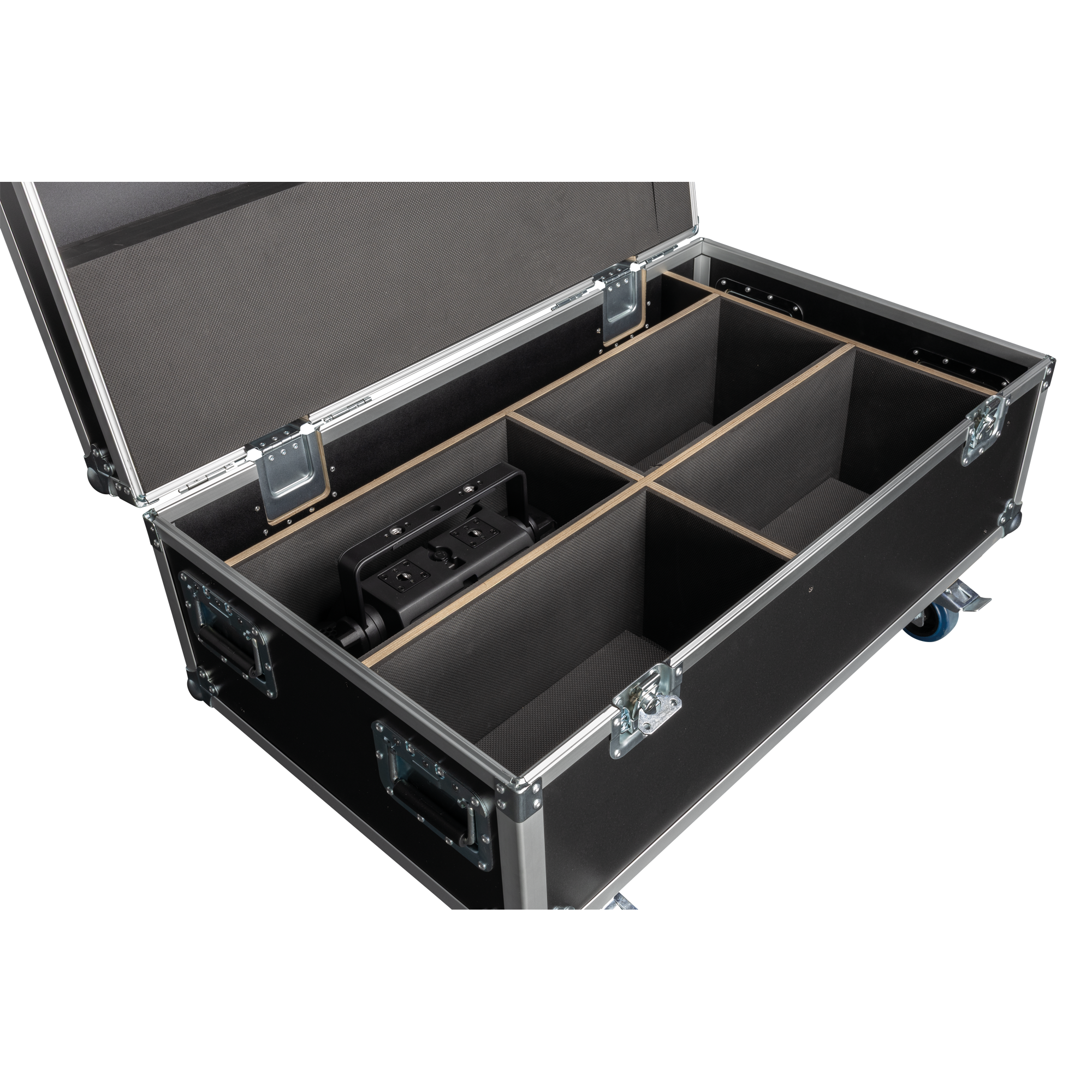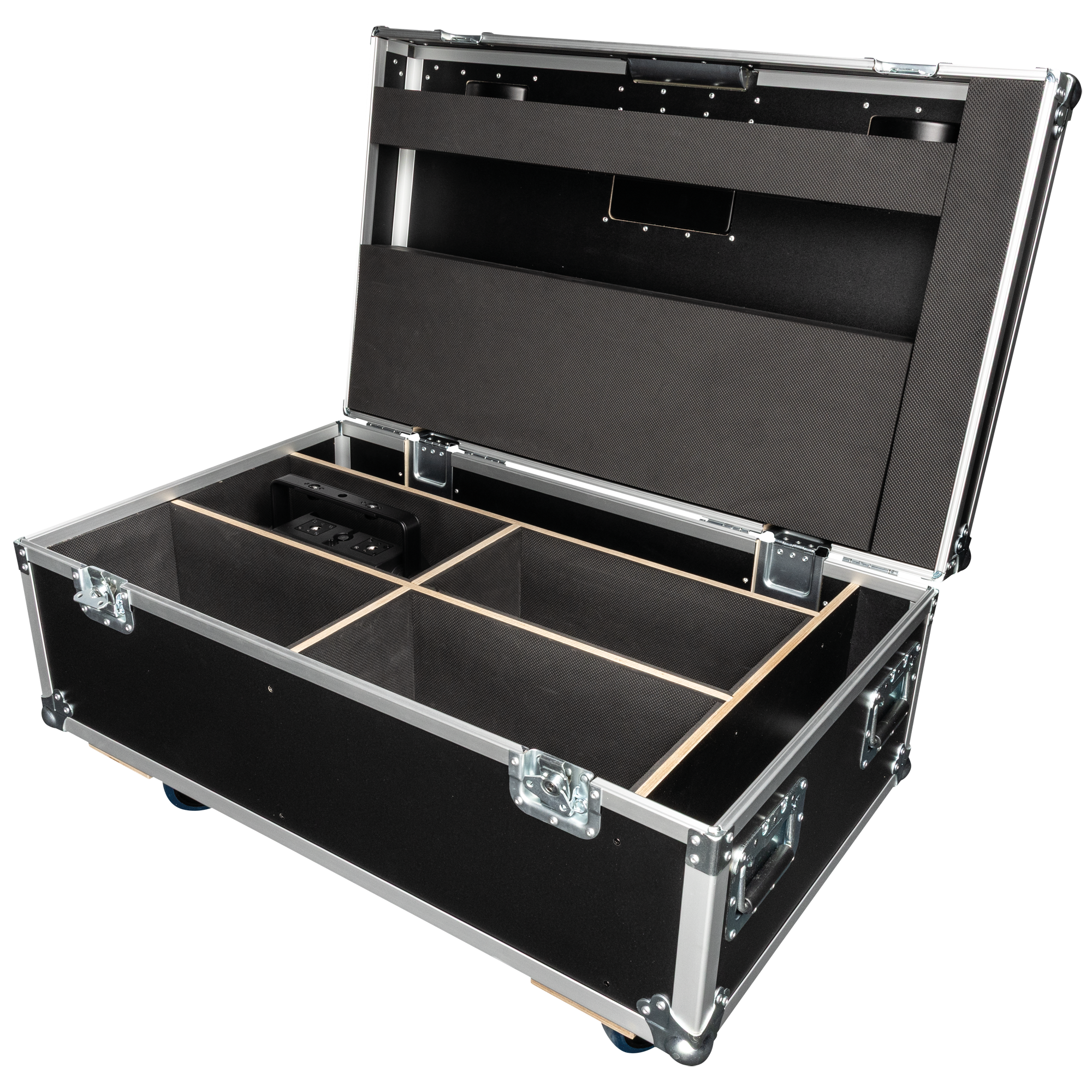 De Showtec Case voor 4x Titan Strobe 1000 FX / Titan Matrix FX is speciaal ontworpen om maximaal vier Titan Strobe 1000 FX-units, vier Titan Matrix FX-units of een combinatie van beide veilig te vervoeren. De kist is gemaakt van stevig 9 mm multiplex en voorzien van Penn Elcom-vlindersluitingen, waardoor je apparatuur tijdens transport en opslag optimaal wordt beschermd. De kist biedt ruimte voor accessoires zoals kabels en klemmen, waardoor het een praktische alles-in-één oplossing is. Hij is voorzien van vier zwenkwielen met remmen, verzonken ergonomische handgrepen en een vast scharnierend deksel voor snelle toegang. Er is een schotel voor een tourlabel geïntegreerd voor duidelijke identificatie onderweg.