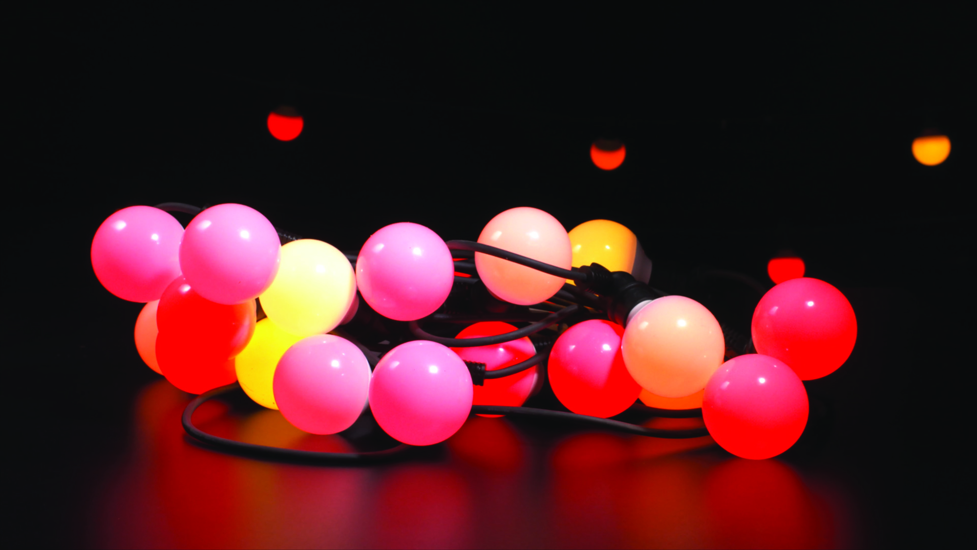 De Showtec Festoon Q4 String IP65 is IP65-geclassificeerd voor buitengebruik in vochtige en stoffige omgevingen. Hij heeft een lengte van 15 m met in totaal 20 pixels. Elke pixel kan afzonderlijk worden aangestuurd met de speciale Festoon Q4 controller. Er kunnen in totaal drie festoonstrings in serie worden aangesloten op de controller. Dit kan worden uitgebreid tot een totaal van 6 slingers per controller met behulp van de speciale Festoon Q4 Booster.