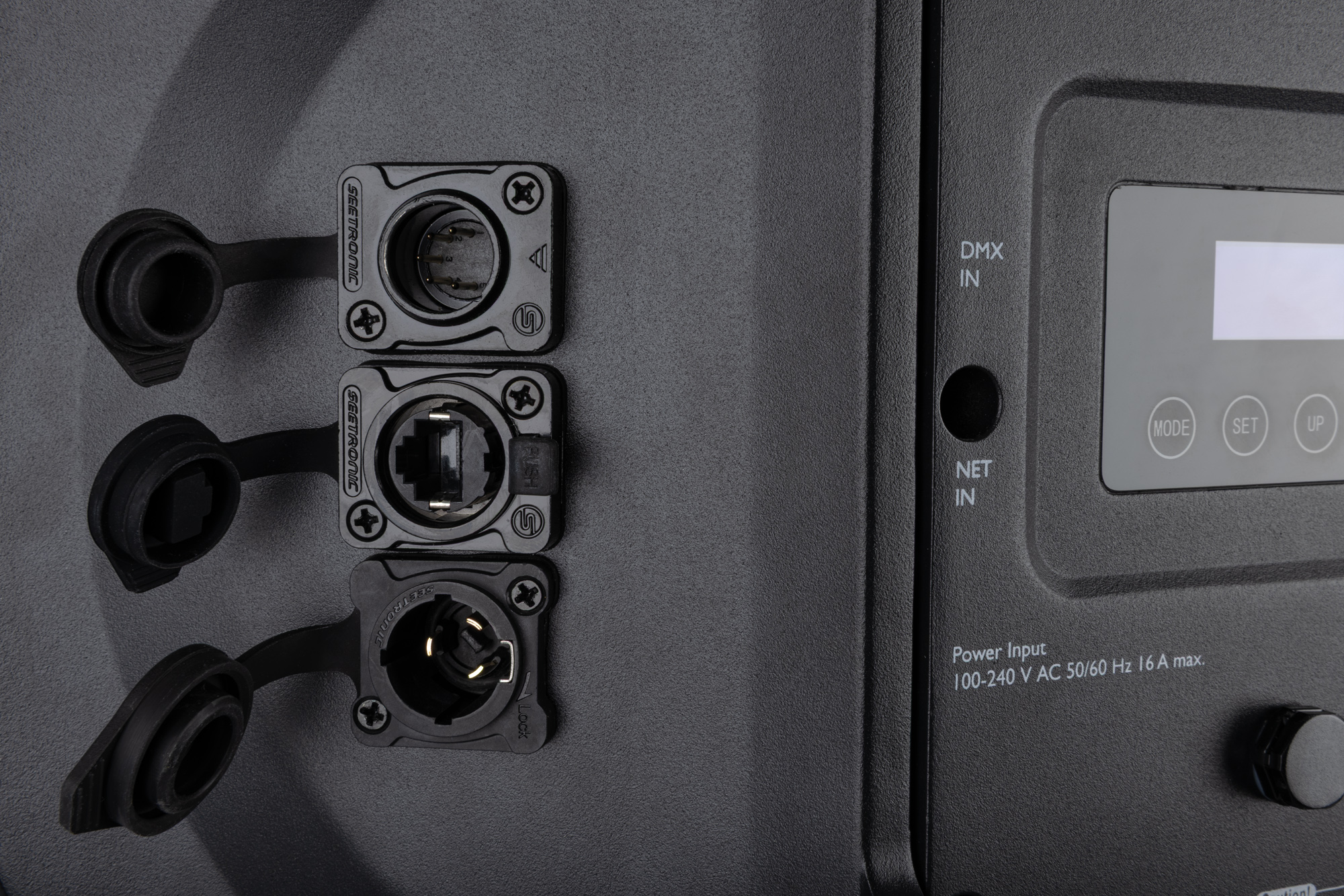 Met een behuizing met IP65-classificatie is de Lumina Beam gebouwd voor betrouwbaarheid onder alle weersomstandigheden. Aansturingsopties zijn onder meer Art-Net, DMX/RDM, Auto en Manual, met maximaal 150 DMX-kanalen voor geavanceerde programmering. Dankzij RDM kun je op afstand het DMX-adres wijzigen en van DMX-modus wisselen zonder fysieke toegang. Het fixture beschikt ook over 4 selecteerbare dimcurves, Power Pro True-connectoren en 5-pins DMX-aansluitingen voor betrouwbare en professionele opstellingen. Hoogfrequente PWM (1–15 kHz) zorgt voor flikkervrije prestaties voor tv- en camera-toepassingen.
