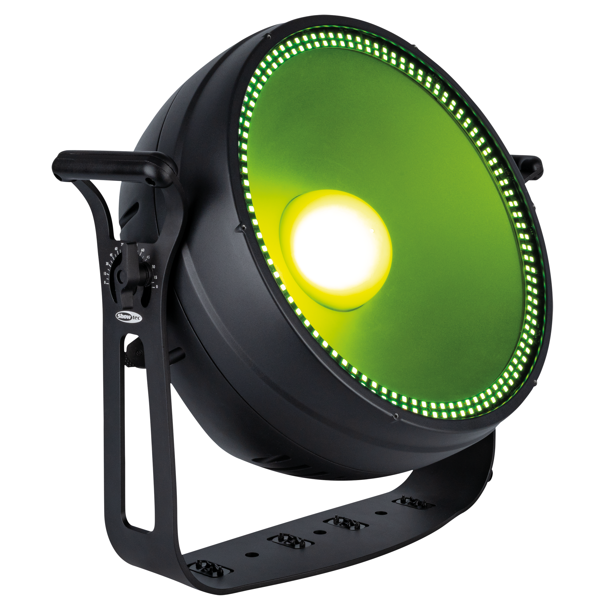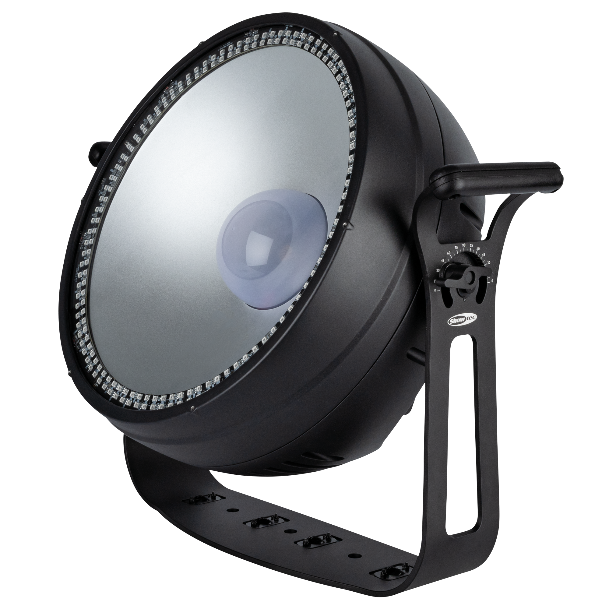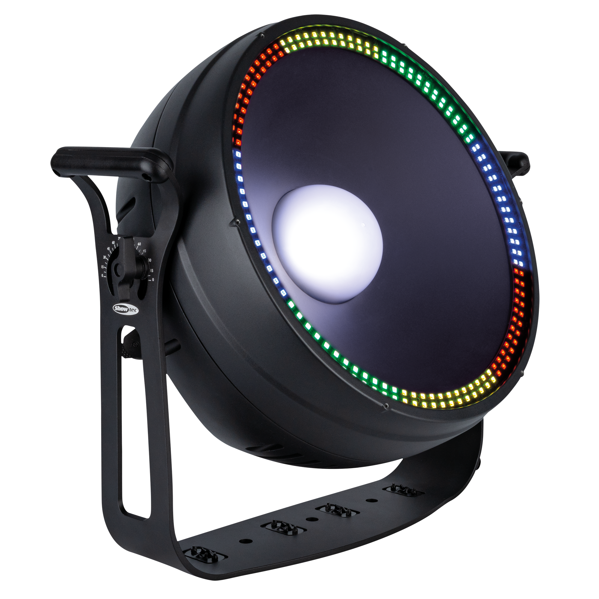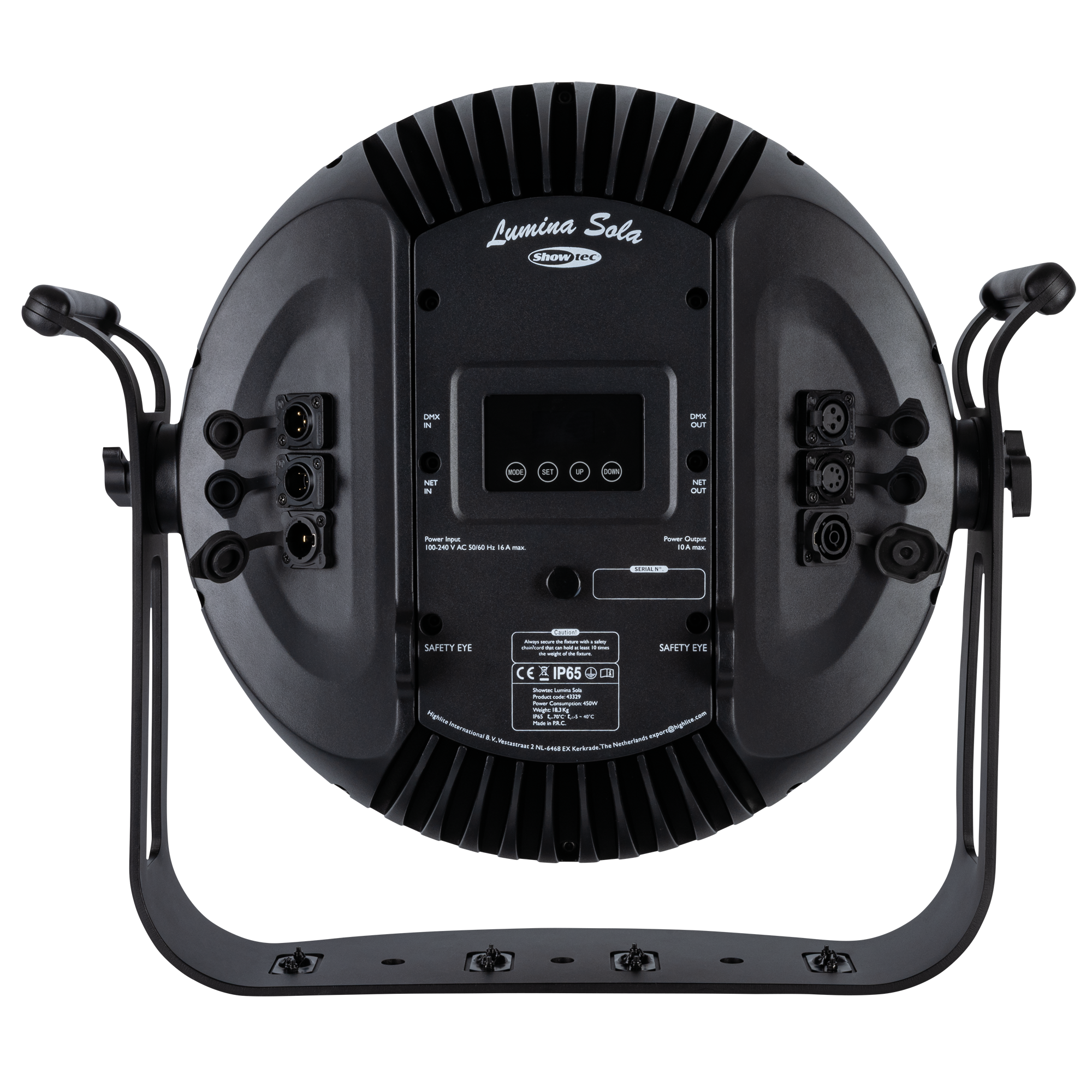 Rondom de centrale LED bevindt zich een ring van 192 RGB-LED’s (elk 1,5 W), verdeeld over 8 regelbare secties voor fraaie visuele effecten en creatieve accenten. Met een brede stralingshoek van meer dan 80° biedt de Lumina Sola een gelijkmatige dekking voor podia en buiteninstallaties. De behuizing met IP65-classificatie garandeert betrouwbare prestaties onder alle weersomstandigheden, terwijl convectiekoeling in combinatie met een axiale ventilator (met instelbare modi) zorgt voor een stille en efficiënte werking.