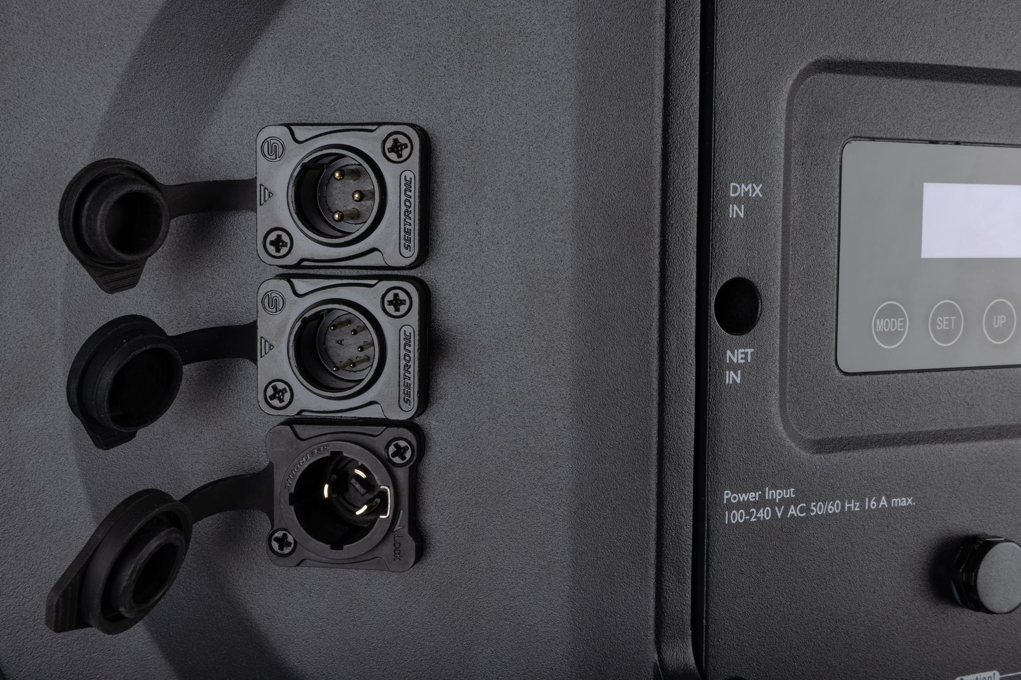 De aansturing is flexibel en professioneel: DMX/RDM, Auto, Manual en Master/Slave-modi worden ondersteund, met maximaal 50 DMX-kanalen voor geavanceerde programmering. Dankzij RDM kun je op afstand het DMX-adres wijzigen en van DMX-modus wisselen zonder fysieke toegang. De Lumina Sola beschikt ook over 4 selecteerbare dimcurves voor nauwkeurige intensiteitsregeling, Power Pro True-connectoren en 3- en 5-pins DMX-aansluitingen voor betrouwbare en robuuste opstellingen. Hoogfrequente PWM (1-25 kHz) zorgt voor flikkervrije prestaties voor tv- en camera-toepassingen.