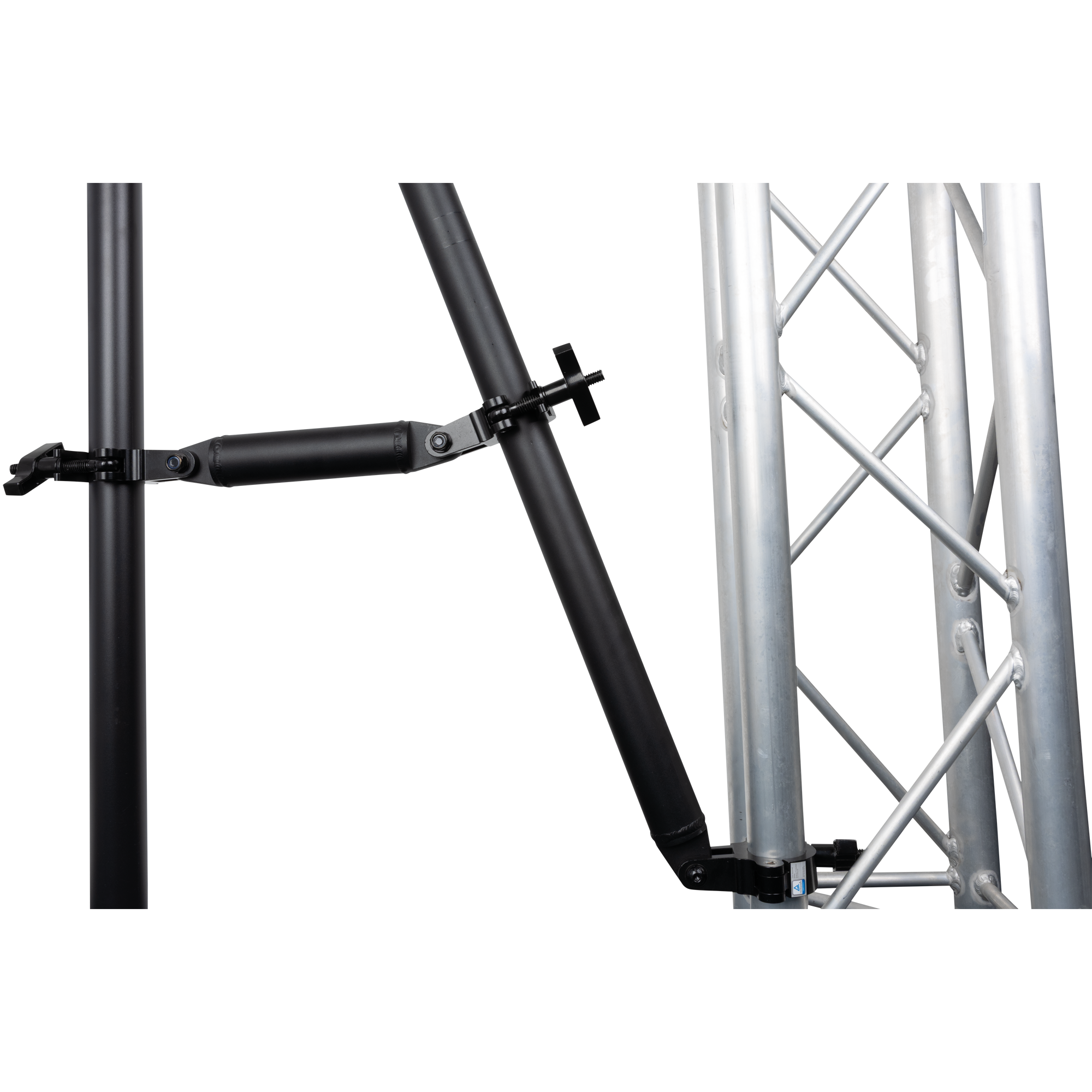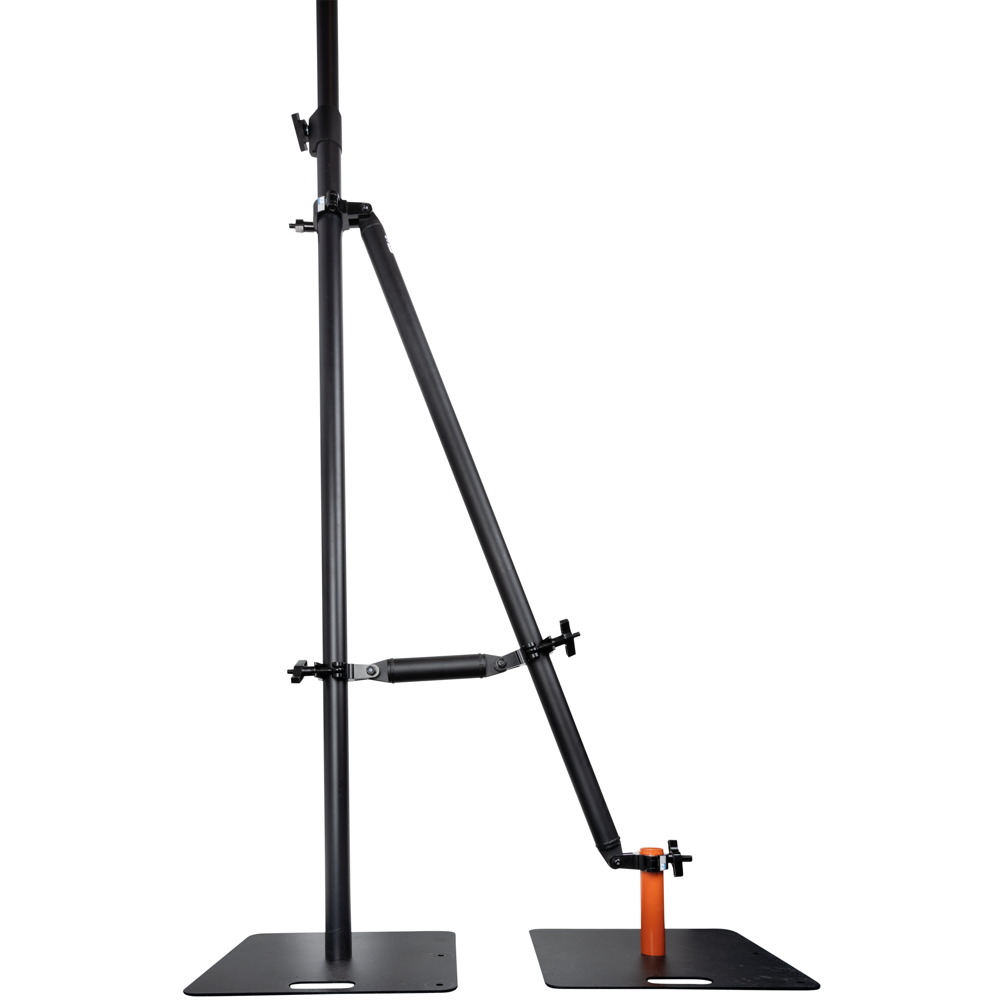 De Wentex-Support voor P&D Upright verhoogt de stabiliteit van je Pipe & Drape-systeem. De support is afgewerkt in stijlvol zwart en voorzien van duurzame half couplers. Hij is ontworpen om op twee punten stevig vastgeklemd te worden op een verticale P&D Upright en kan worden vastgemaakt aan een pin op een tweede Base Plate of aan een vaste installatie met buizen van 48-50 mm voor extra stevigheid. Met buisklemmen aan beide uiteinden en een extra klem op een verlengde arm biedt hij extra stevigheid aan je opstelling, waardoor een veilige en professionele installatie wordt gegarandeerd. Ideaal voor evenementen, tentoonstellingen en podiumomgevingen waar betrouwbaarheid belangrijk is.